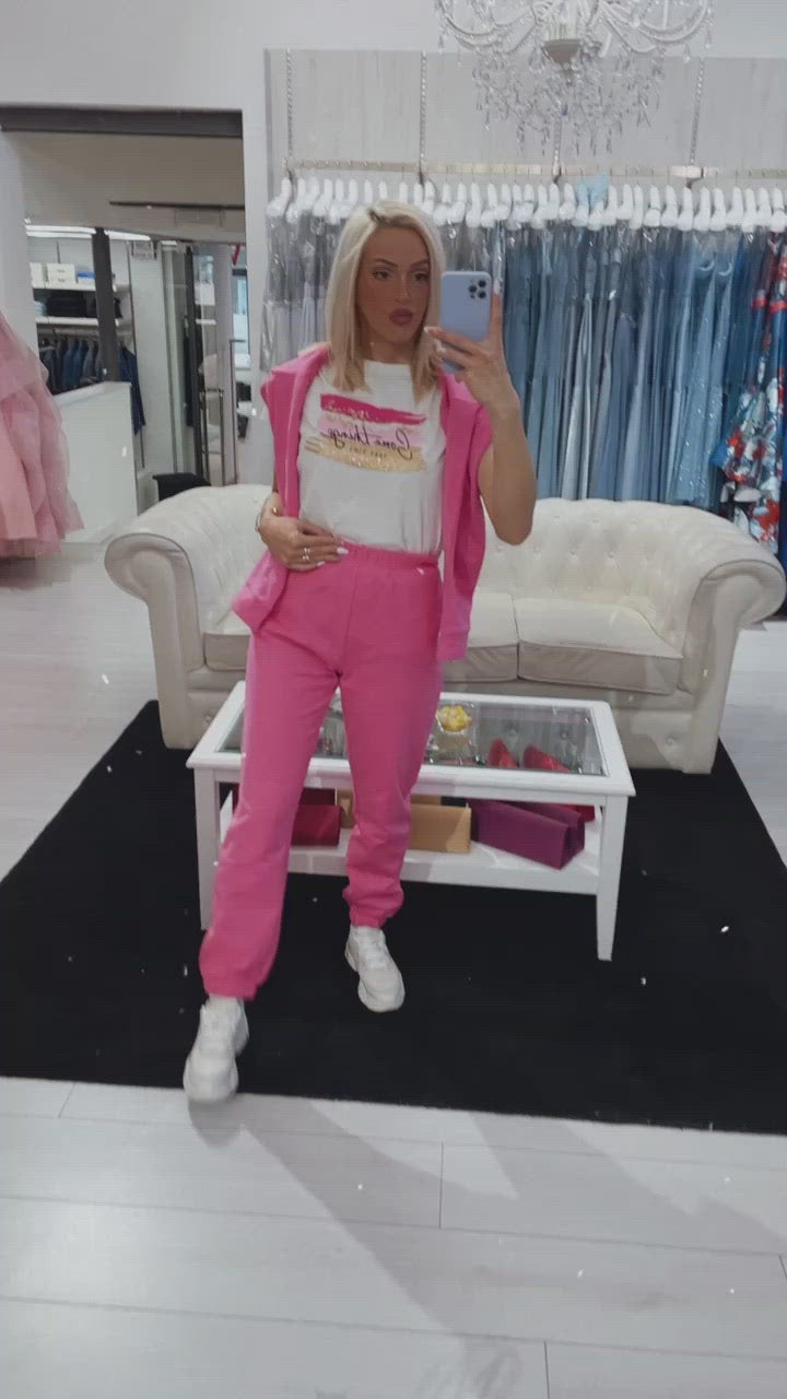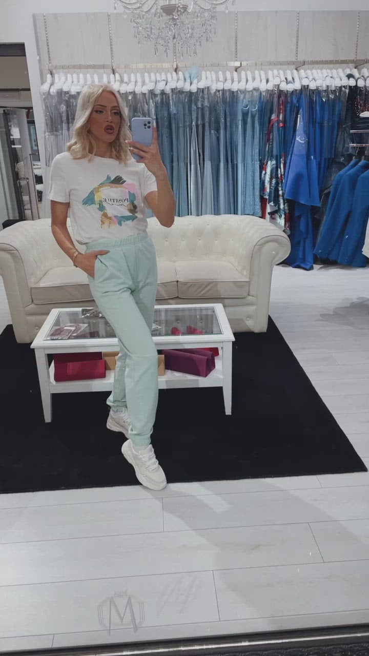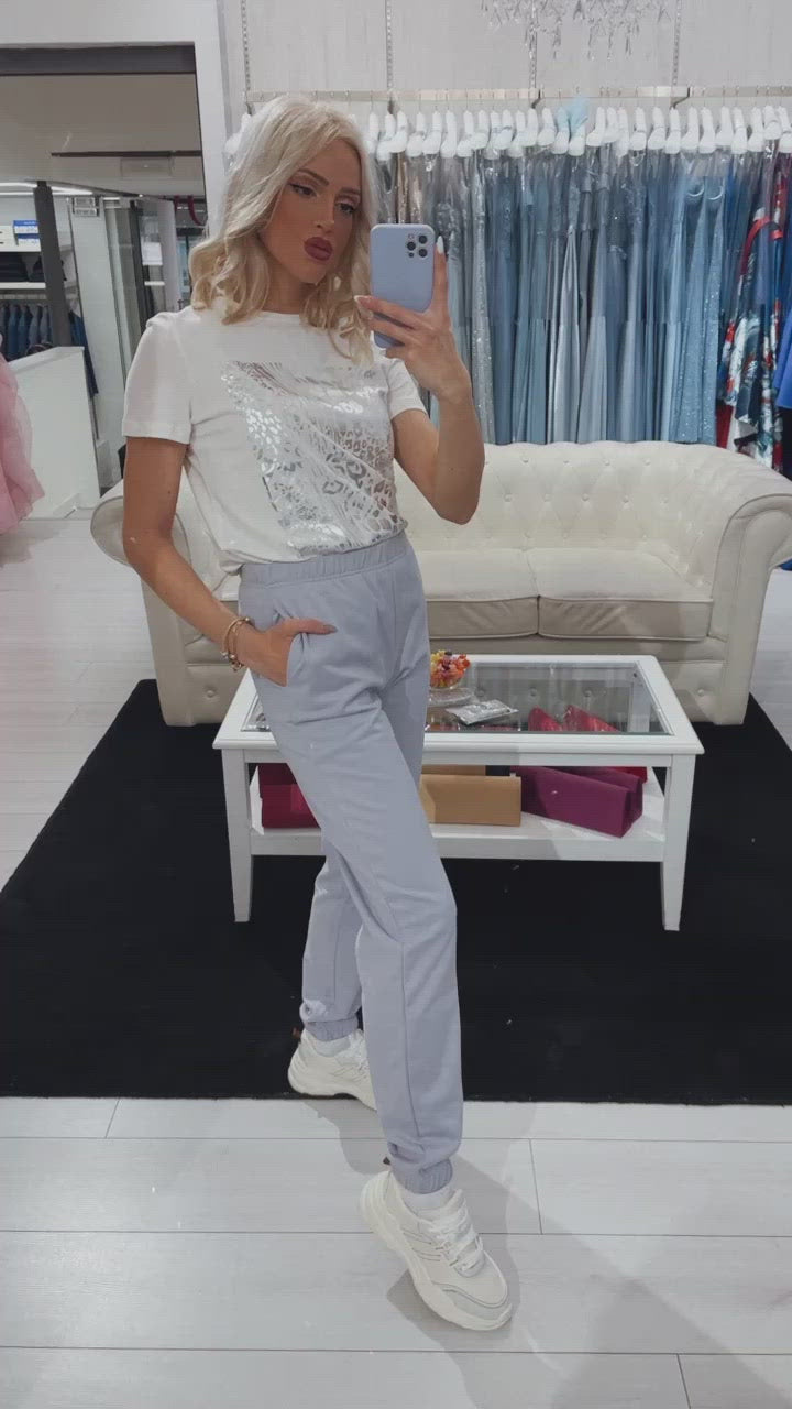 Pantalone di tuta felpato con elastico in vita e alle caviglie.